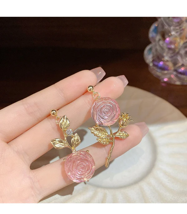Pink earrings, rose earrings, Pinterest inspired accessories, Pinteresty jewellery, gold jewellery, gold earrings